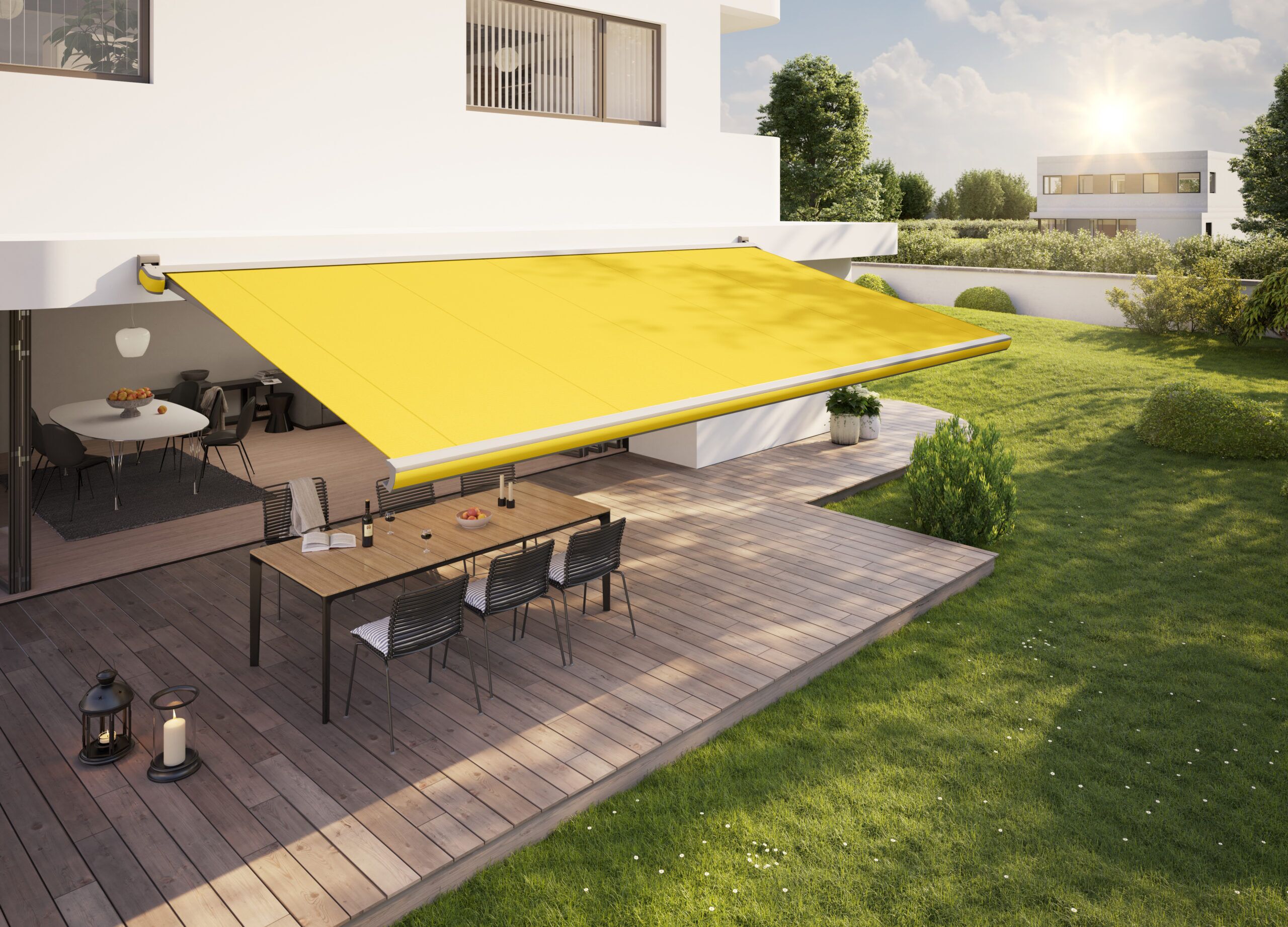 Die MX-3 ist mit einem manuellen oder funkgesteuerten Motorbetrieb erhältlich und kann auch in eine Hausautomation integriert werden. Weitere Optionen sind dimmbare Wärmestrahler und Wettersensoren. Mit einer maximalen Breite von sechs Metern und einer Tiefe von drei Metern bietet die kleine Markise trotz ihrer kompakten Größe viel Schatten.