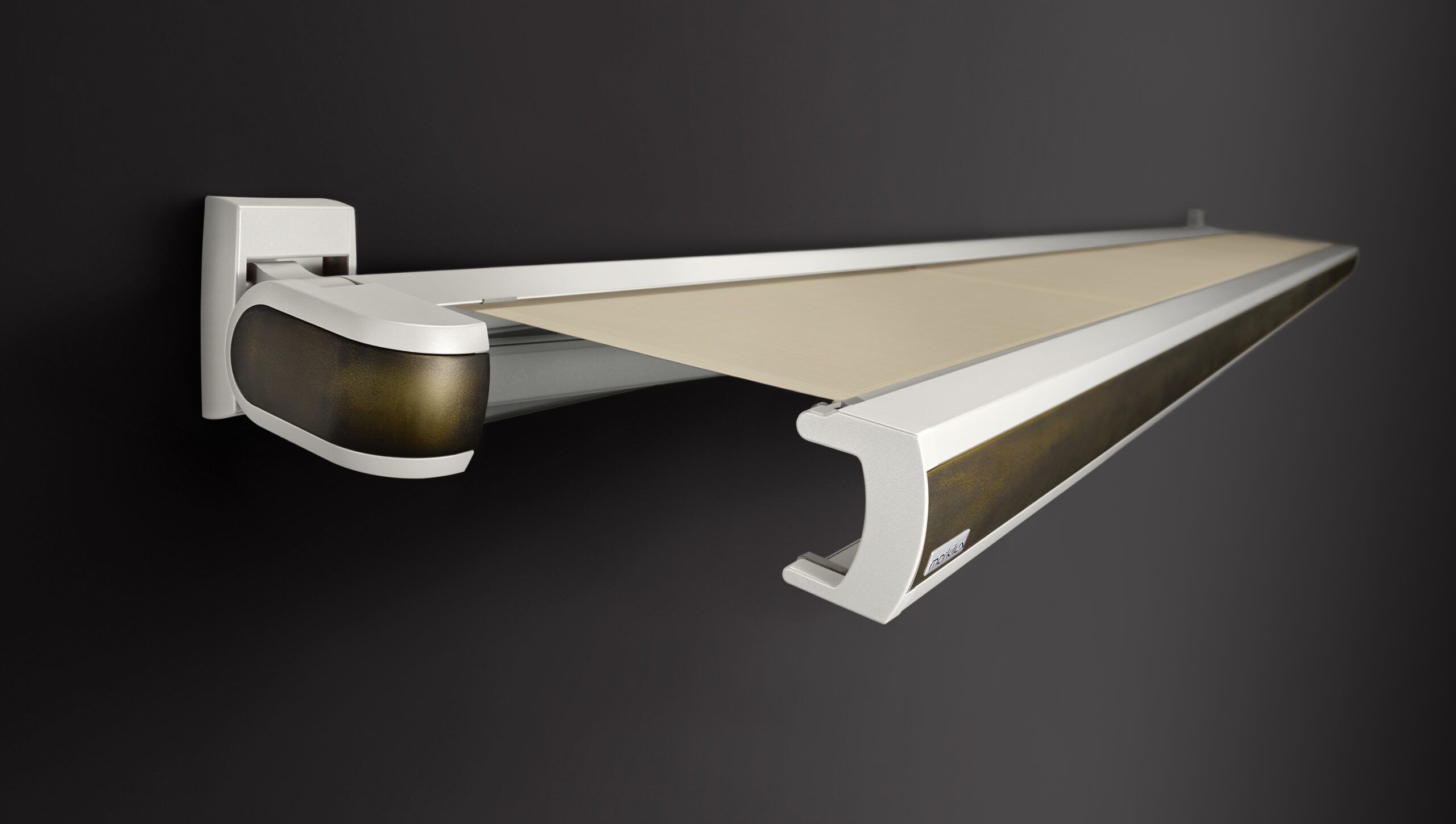Neben dem gelungenen Design bietet die MX-3 auch technisch einige Highlights. Eine neue Lichtoption ermöglicht es, eine LED line oder LED Spots unter dem Gehäuse anzubringen. So kann die Markise und die Fassade am Abend mit einem akzentuierenden Lichtband oder mit dezenten Lichtkegeln beleuchtet werden. Hightech-Mechanik sorgt dafür, dass das Sonnenschutztuch leichtgängig ein- und ausgefahren wird. Die Halter für Wand und Decke fallen dabei kaum auf, da sie durch Sichtkappen verdeckt sind.